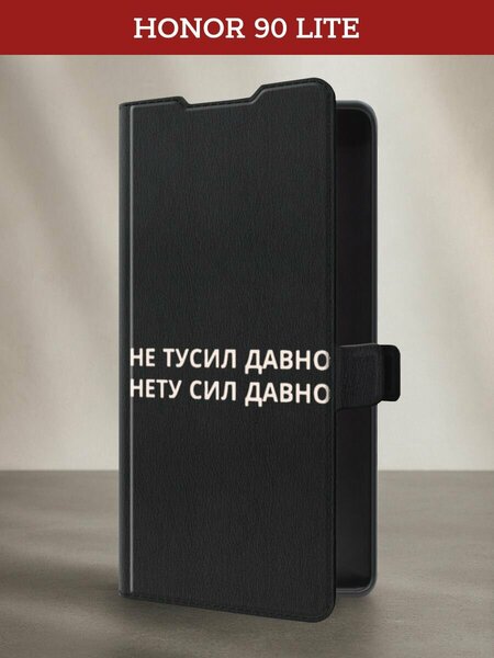 Чехол-книжка на Honor 90 Lite / Хонор 90 Лайт с принтом Нету сил давно, черный