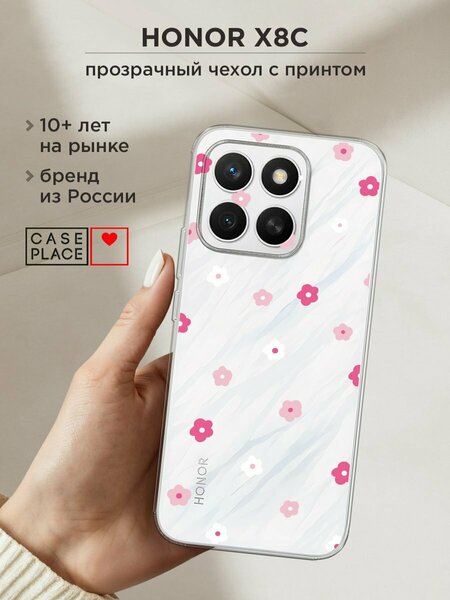 Силиконовый чехол из приятного на ощупь материала с сочным УФ-принтом – порадует и оставит яркие впечатления. Чехол помогает защитить Honor X8c от царапин, загрязнений и при падениях с небольшой высоты. Накладка не скользит в руках. Она тонкая и легкая – девайс в ней не становится больше, поэтому им так удобно пользоваться. Для надежной защиты модуля камер от повреждений есть бортик: если смартфон упадет на заднюю крышку, этот бортик не даст видеоблоку удариться о поверхность, приняв удар на себя. Специальные точки внутри чехла не дают ему прилипать к корпусу устройства. Технологические вырезы выполнены с высокой точностью, поэтому все порты и кнопки Хонор Х8с остаются доступными. Мы наносим изображения на собственном японском оборудовании гибкими чернилами, поэтому принт "Весенние цветочки рисунок" не царапается монетами, ключами и песчинками, не затирается и не трескается при повседневных деформациях. Пигмент застывает под действием УФ-излучения, образуя защитную пленку. Положение принта подобрано таким образом, чтобы гармонично смотреться относительно блока камер. Формат рисунка – 2D: боковые стороны остаются прозрачными.