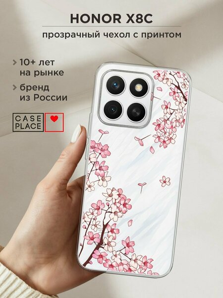 Силиконовый чехол из приятного на ощупь материала с сочным УФ-принтом – порадует и оставит яркие впечатления. Чехол помогает защитить Honor X8c от царапин, загрязнений и при падениях с небольшой высоты. Накладка не скользит в руках. Она тонкая и легкая – девайс в ней не становится больше, поэтому им так удобно пользоваться. Для надежной защиты модуля камер от повреждений есть бортик: если смартфон упадет на заднюю крышку, этот бортик не даст видеоблоку удариться о поверхность, приняв удар на себя. Специальные точки внутри чехла не дают ему прилипать к корпусу устройства. Технологические вырезы выполнены с высокой точностью, поэтому все порты и кнопки Хонор Х8с остаются доступными. Мы наносим изображения на собственном японском оборудовании гибкими чернилами, поэтому принт "Ветви сакуры 1" не царапается монетами, ключами и песчинками, не затирается и не трескается при повседневных деформациях. Пигмент застывает под действием УФ-излучения, образуя защитную пленку. Положение принта подобрано таким образом, чтобы гармонично смотреться относительно блока камер. Формат рисунка – 2D: боковые стороны остаются прозрачными.