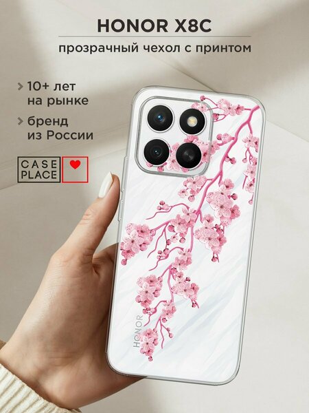 Силиконовый чехол из приятного на ощупь материала с сочным УФ-принтом – порадует и оставит яркие впечатления. Чехол помогает защитить Honor X8c от царапин, загрязнений и при падениях с небольшой высоты. Накладка не скользит в руках. Она тонкая и легкая – девайс в ней не становится больше, поэтому им так удобно пользоваться. Для надежной защиты модуля камер от повреждений есть бортик: если смартфон упадет на заднюю крышку, этот бортик не даст видеоблоку удариться о поверхность, приняв удар на себя. Специальные точки внутри чехла не дают ему прилипать к корпусу устройства. Технологические вырезы выполнены с высокой точностью, поэтому все порты и кнопки Хонор Х8с остаются доступными. Мы наносим изображения на собственном японском оборудовании гибкими чернилами, поэтому принт "Ветка сакуры 2" не царапается монетами, ключами и песчинками, не затирается и не трескается при повседневных деформациях. Пигмент застывает под действием УФ-излучения, образуя защитную пленку. Положение принта подобрано таким образом, чтобы гармонично смотреться относительно блока камер. Формат рисунка – 2D: боковые стороны остаются прозрачными.