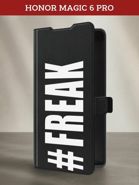 Чехол-книжка на Honor Magic 6 Pro / Хонор Меджик 6 Про с принтом #Freak, черный
