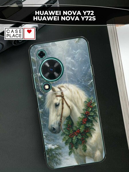 Чехол на Huawei Nova Y72/Y72s / Хуавей Нова Y72/Y72s с принтом "Белый конь с венком"