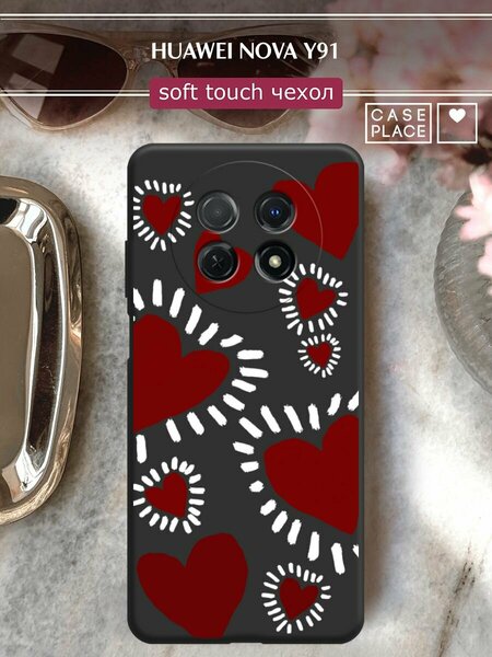 Чехол на Huawei Nova Y91 / Хуавей Нова Y91 с принтом "Бордовые сердца 2"