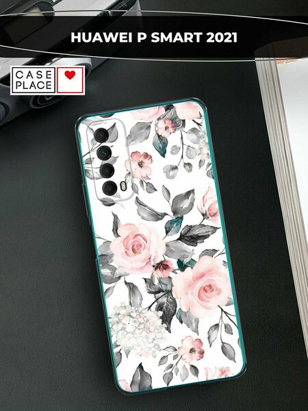 Чехол на Huawei P Smart 2021 / Хуавей П Смарт 2021 с принтом "Розы на белом"