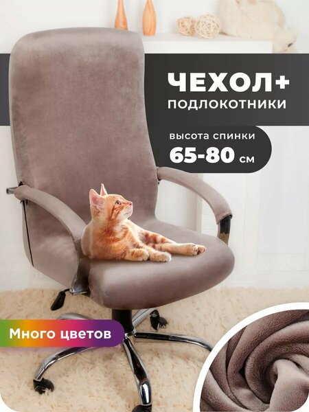 Чехол на компьютерное кресло с подлокотниками. Мягкая, шелковистая, вот-вот замурлыкающая у вас в руках велюровая ткань невероятной нежности. Чехол на компьютерное кресло легко надевается и не привередлив в уходе. Под ручками на липучках, по бокам на молнии. Раз, два и готово! Всего вам самого уютного! Чехол для компьютерного кресла можно стирать в машинке при 30 градусах. Чехол на компьютерное кресло идёт вместе с подлокотниками, которые по всей длине застёгиваются на молнию. Рекомендуемые размеры: Ширина сидень/спинки: от 45 до 60 см. Глубина сиденья: от 45 до 60 см. Высота спинки: от 65 до 80 см. Длина подлокотника 40 см, ширина 16 см.