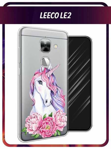 Чехол на LeEco Le 2/2 pro / Лееко Ле 2/2 про с принтом "Единорог с пионами", прозрачный