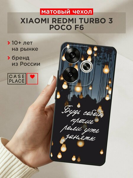 Согласитесь – прятать красивый Xiaomi Redmi Turbo 3/Poco F6 в громоздкий чехол не хочется. Но и оставлять его без защиты слишком рискованно. Решение есть! Наш матовый силиконовый чехол сидит как влитой, обеспечивая идеальный баланс между защитой и эстетикой. Он практически не увеличивает габариты телефона, сохраняя его изящный дизайн. Яркий выпуклый УФ-принт "Будь собой" не только не сотрется (так как чернила отвердевают и запечатываются под действием ультрафиолета) Точная посадка – все кнопки, разъемы и камеры остаются полностью доступными. Никаких неудобств при использовании; Выступающий бортик по краям защищает экран и камеру от царапин при падении. При этом чехол не добавляет лишнего объема. Специальные антискользящие точки внутри чехла предотвращают появление царапин на корпусе телефона. А матовая поверхность не собирает отпечатки пальцев. Матовый материал не желтеет со временем, сохраняя первозданный вид вашего Редми Турбо 3/Поко Ф6. Чехол устойчив к деформации и долго остается как новый. Выбирая этот чехол, вы получаете: Надежную защиту от ударов и царапин Идеальное сочетание с дизайном Xiaomi Redmi Turbo 3/Poco F6 Комфортное использование всех функций телефона Долговечность и сохранение прозрачности Подарите своему Xiaomi Redmi Turbo 3/Poco F6 защиту, которая не испортит его стиль!