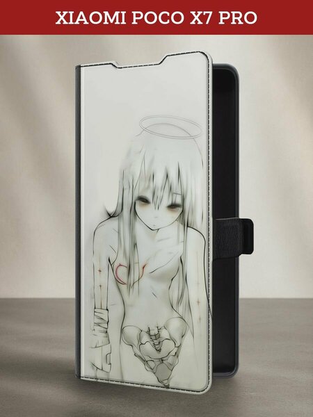 Чехол-книжка на Poco X7 Pro / Поко x7 pro с рисунком "Аниме рисунок чёрно-белый"