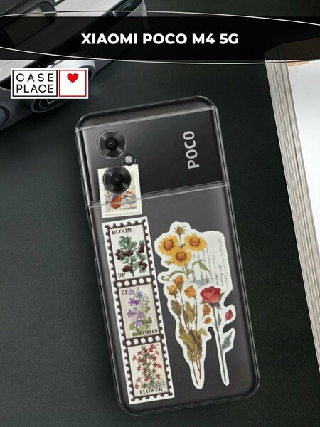Чехол на Xiaomi Poco M4 5G / Сяоми Поко M4 5G с принтом Марки с цветами