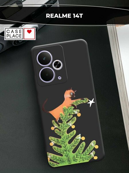 Чехол на Realme 14T / Реалми 14Т с принтом "Кот на елке"
