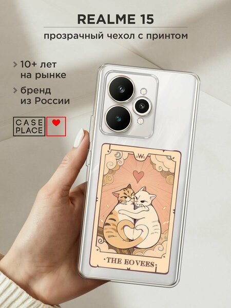 Силиконовый чехол из приятного на ощупь материала с сочным УФ-принтом – порадует и оставит яркие впечатления. Чехол помогает защитить Realme 15 от царапин, загрязнений и при падениях с небольшой высоты. Накладка не скользит в руках. Она тонкая и легкая – девайс не становится больше, поэтому им так удобно пользоваться. Для надежной защиты модуля камер от повреждений есть бортик: если смартфон упадет на заднюю крышку, этот бортик не даст видеоблоку удариться о поверхность, приняв удар на себя. Специальные точки внутри чехла не дают ему прилипать к корпусу устройства. Технологические вырезы выполнены с высокой точностью, поэтому все порты и кнопки Реалми 15 остаются доступными. Мы наносим изображения на собственном японском оборудовании гибкими чернилами, поэтому принт "The lovers cats 2 - 14 февраля" не царапается монетами, ключами и песчинками, не затирается и не трескается при повседневных деформациях. Пигмент застывает под действием УФ-излучения, образуя защитную пленку. Положение принта подобрано таким образом, чтобы гармонично смотреться относительно блока камер. Формат рисунка – 2D: боковые стороны остаются прозрачными.