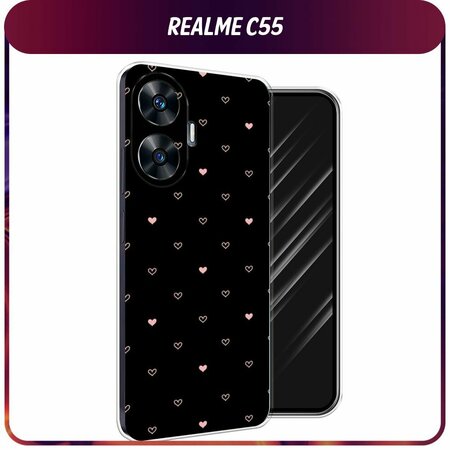 Чехол на Realme C55 / Реалми C55 с принтом "Черный фон и сердечки"