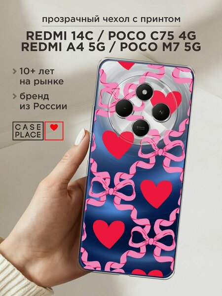 Силиконовый чехол из приятного на ощупь материала с сочным УФ-принтом – порадует и оставит яркие впечатления! Чехол помогает защитить Redmi 14C/Poco C75 4G/Redmi A4 5G/Poco M7 5G от царапин, загрязнений и при падениях с небольшой высоты. Накладка не скользит в руках. Она тонкая и легкая – девайс в ней не становится больше, поэтому им так удобно пользоваться. Для надежной защиты модуля камер от повреждений есть бортик: если смартфон упадет на заднюю крышку, этот бортик не даст видеоблоку удариться о поверхность, приняв удар на себя. Специальные точки внутри чехла не дают ему прилипать к корпусу устройства. Технологические вырезы выполнены с высокой точностью, поэтому все порты и кнопки Редми 14С остаются доступными. Мы наносим изображения на собственном японском оборудовании гибкими чернилами, поэтому принт "Hearts and ribbons 2 - 14 февраля" не царапается монетами, ключами и песчинками, не затирается и не трескается при повседневных деформациях. Пигмент застывает под действием УФ-излучения, образуя защитную пленку. Положение принта подобрано таким образом, чтобы гармонично смотреться относительно блока камер. Формат рисунка – 2D: боковые стороны остаются прозрачными.