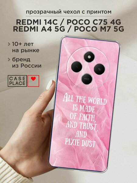 Силиконовый чехол из приятного на ощупь материала с сочным УФ-принтом – порадует и оставит яркие впечатления. Чехол помогает защитить Redmi 14C/Poco C75 4G/Redmi A4 5G/Poco M7 5G от царапин, загрязнений и при падениях с небольшой высоты. Накладка не скользит в руках. Она тонкая и легкая – девайс в ней не становится больше, поэтому им так удобно пользоваться. Для надежной защиты модуля камер от повреждений есть бортик: если смартфон упадет на заднюю крышку, этот бортик не даст видеоблоку удариться о поверхность, приняв удар. Специальные точки внутри чехла не дают ему прилипать к корпусу устройства. Технологические вырезы выполнены с высокой точностью, поэтому все порты и кнопки Редми 14С остаются доступными. Мы наносим изображения на собственном японском оборудовании гибкими чернилами, поэтому принт "Pixie dust - 8 марта" не царапается монетами, ключами и песчинками, не затирается и не трескается при повседневных деформациях. Пигмент застывает под действием УФ-излучения, образуя защитную пленку. Положение принта подобрано таким образом, чтобы гармонично смотреться относительно блока камер. Формат рисунка – 2D: боковые стороны остаются прозрачными!