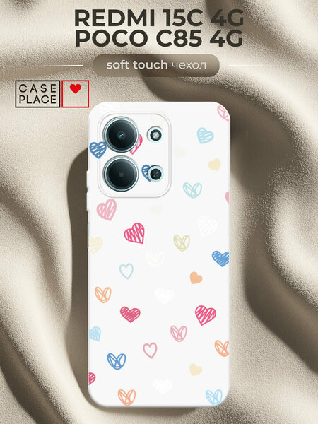 Белый soft touch чехол на Redmi 15C 4G / Poco C85 4G с принтом "Нежные сердечки рисунок" — это изысканный аксессуар, который совмещает надежную защиту и уникальный дизайн. Изготовленный из высококачественного белого силикона, он станет идеальным выбором для тех, кто хочет защитить свой смартфон и выделить его. Бампер на Редми 15С 4G / Poco C85 4G с рисунком обладает множеством преимуществ! Материал аксессуара — тонкий и лёгкий силикон с софт тач покрытием, что делает его практически невесомым защитником для вашего телефона. Этот материал приятный на ощупь и не скользит в руке, обеспечивая удобное использование. Внутренняя поверхность чехла оснащена микрофиброй, которая предотвращает появление царапин и сохраняет внешний вид телефона. Матовый белый софт тач чехол с принтом точно соответствует разъемам и кнопкам устройства, что обеспечивает легкий доступ ко всем функциям. Бортик толщиной 0,8 мм надежно защищает камеру и экран вашего устройства, позволяя носить его в сумке без беспокойства о сохранности смартфона. При этом чехол на Redmi 15C 4G / Poco C85 4G совместим с беспроводной зарядкой и другими аксессуарами для телефона, что делает его еще более удобным в использовании; Чехол на Редми 15С 4G / Poco C85 4G матовый белый украшен яркими и оригинальными дизайнами, подчеркивающими вашу индивидуальность, а насыщенные цвета устойчивы к выгоранию на длительный срок. Принт не стирается со временем и не трескается, благодаря применению гибких чернил при печати. Подберите подходящий для себя вариант в каталоге Case Place!