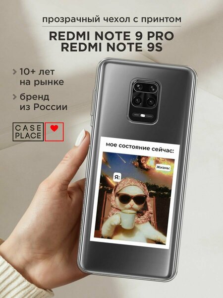Чехол на Xiaomi Redmi Note 9S/9 Pro / Сяоми Редми Нот 9S/9 Про с принтом "Моё состояние", прозрачный
