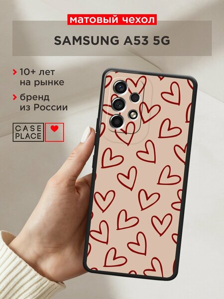 Матовый силиконовый чехол с рисунком надежно защищает Samsung Galaxy A53 5G от царапин, идеально сидит на корпусе смартфона и круто смотрится. Помимо модного внешнего вида, чехол удобный и практичный. У него шершавое покрытие, которое не скользит в руках, а значит, вы не выроните на ходу и не разобьете Самсунг А53 5G. Яркий выпуклый УФ-принт "Little hearts doodles 1 - 14 февраля" не только не сотрется (так как чернила отвердевают и запечатываются под действием ультрафиолета), но и поможет выделиться. Материал рассчитан на долгий срок службы; он легко чистится ластиком, мыльным раствором и подручными средствами (содой, уксусом, зубной пастой и т. п.). А с помощью ацетона с него можно оттереть даже зеленку! Главное, делать это на участках, свободных от принта.