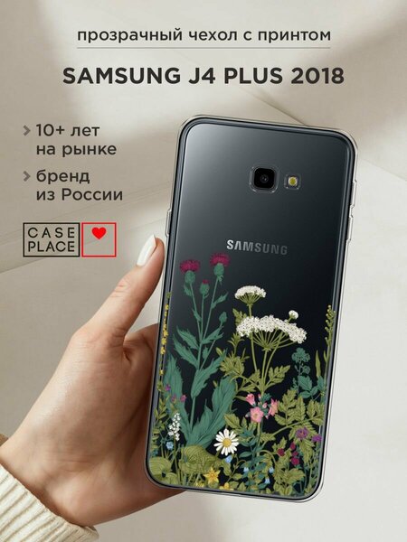 Чехол на Samsung Galaxy J4 Plus 2018 / Самсунг J4 Plus 2018 с принтом "Дикие полевые цветы", прозрачный
