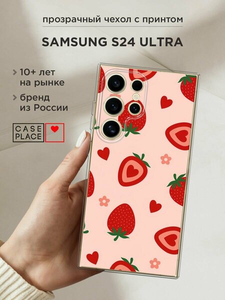 Силиконовый чехол из приятного на ощупь материала с сочным УФ-принтом – порадует и оставит яркие впечатления. Чехол помогает защитить Samsung Galaxy S24 Ultra от царапин, загрязнений и при падениях с небольшой высоты. Накладка не скользит в руках. Она тонкая и легкая – девайс в ней не становится больше, поэтому им так удобно пользоваться. Для надежной защиты модуля камер от повреждений есть бортик: если смартфон упадет на заднюю крышку, этот бортик не даст видеоблоку удариться о поверхность, приняв удар на себя. Специальные точки внутри чехла не дают ему прилипать к корпусу устройства. Технологические вырезы выполнены с высокой точностью, поэтому все порты и кнопки Самсунг S24 Ultra остаются доступными. Мы наносим изображения на собственном японском оборудовании гибкими чернилами, поэтому принт "Heart strawberries 1 - 14 февраля" не царапается монетами, ключами и песчинками, не затирается и не трескается при повседневных деформациях. Пигмент застывает под действием УФ-излучения, образуя защитную пленку. Положение принта подобрано таким образом, чтобы гармонично смотреться относительно блока камер. Формат рисунка – 2D: боковые стороны остаются прозрачными.