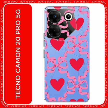 Чехол на Tecno Camon 20 Pro 5G / Текно Камон 20 Про 5G с принтом "Hearts and ribbons 2 - 14 февраля", прозрачный