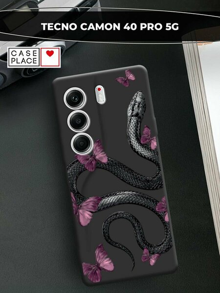 Чехол на Tecno Camon 40 Pro 5G / Текно Камон 40 Про 5G с принтом Snake and butterflies 2