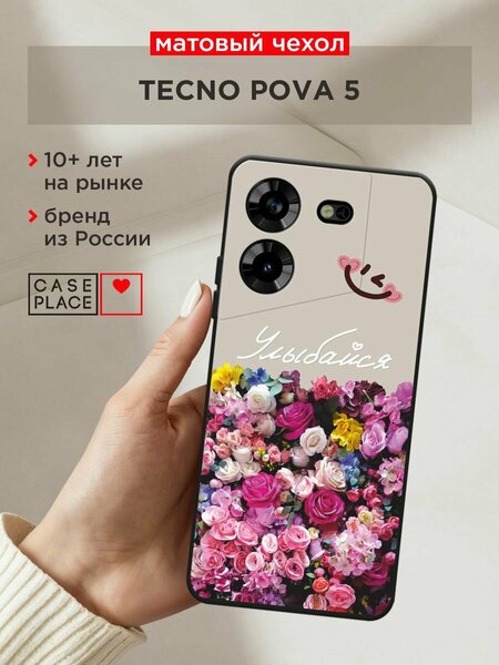 Согласитесь – прятать красивый Tecno Pova 5 в громоздкий чехол не хочется. Но и оставлять его без защиты слишком рискованно. Решение есть! Наш матовый силиконовый чехол сидит как влитой, обеспечивая идеальный баланс между защитой и эстетикой. Он практически не увеличивает габариты телефона, сохраняя его изящный дизайн. Яркий выпуклый УФ-принт "Букет счастья" не только не сотрется (так как чернила отвердевают и запечатываются под действием ультрафиолета) Точная посадка – все кнопки, разъемы и камеры остаются полностью доступными. Никаких неудобств при использовании; Выступающий бортик по краям защищает экран и камеру от царапин при падении. При этом чехол не добавляет лишнего объема. Специальные антискользящие точки внутри чехла предотвращают появление царапин на корпусе телефона. А матовая поверхность не собирает отпечатки пальцев. Матовый материал не желтеет со временем, сохраняя первозданный вид вашего Техно Пова 5. Чехол устойчив к деформации и долго остается как новый. Выбирая этот чехол, вы получаете: Надежную защиту от ударов и царапин Идеальное сочетание с дизайном Tecno Pova 5 Комфортное использование всех функций телефона Долговечность и сохранение прозрачности Подарите своему Tecno Pova 5 защиту, которая не испортит его стиль!