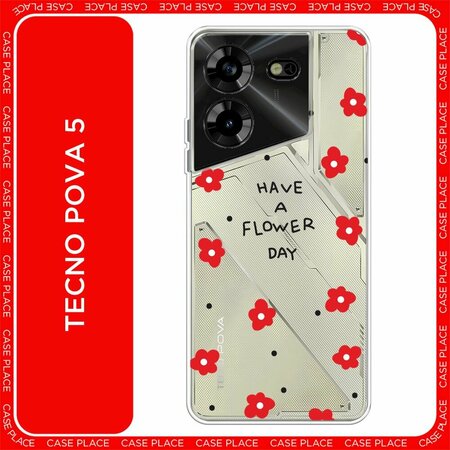 Чехол на Tecno Pova 5 / Техно Пова 5 с принтом "Have a flower day 2", прозрачный