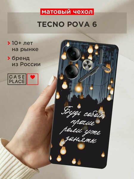 Согласитесь – прятать красивый Tecno Pova 6 в громоздкий чехол не хочется. Но и оставлять его без защиты слишком рискованно. Решение есть! Наш матовый силиконовый чехол сидит как влитой, обеспечивая идеальный баланс между защитой и эстетикой. Он практически не увеличивает габариты телефона, сохраняя его изящный дизайн. Яркий выпуклый УФ-принт "Будь собой" не только не сотрется (так как чернила отвердевают и запечатываются под действием ультрафиолета) Точная посадка – все кнопки, разъемы и камеры остаются полностью доступными. Никаких неудобств при использовании; Выступающий бортик по краям защищает экран и камеру от царапин при падении. При этом чехол не добавляет лишнего объема. Специальные антискользящие точки внутри чехла предотвращают появление царапин на корпусе телефона. А матовая поверхность не собирает отпечатки пальцев. Матовый материал не желтеет со временем, сохраняя первозданный вид вашего Техно Пова 6. Чехол устойчив к деформации и долго остается как новый. Выбирая этот чехол, вы получаете: Надежную защиту от ударов и царапин Идеальное сочетание с дизайном Tecno Pova 6 Комфортное использование всех функций телефона Долговечность и сохранение прозрачности Подарите своему Tecno Pova 6 защиту, которая не испортит его стиль!