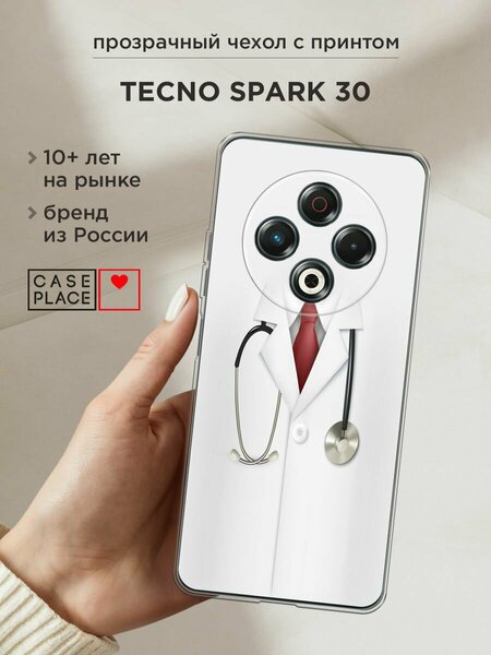 Силиконовый чехол из приятного на ощупь материала с сочным УФ-принтом – порадует и оставит яркие впечатления. Чехол помогает защитить Tecno Spark 30 от царапин, загрязнений и при падениях с небольшой высоты. Накладка не скользит в руках. Она тонкая и легкая – девайс в ней не становится больше, поэтому им так удобно пользоваться. Для надежной защиты модуля камер от повреждений есть бортик: если смартфон упадет на заднюю крышку, этот бортик не даст видеоблоку удариться о поверхность, приняв удар. Специальные точки внутри чехла не дают ему прилипать к корпусу устройства. Технологические вырезы выполнены с высокой точностью, поэтому все порты и кнопки Техно Спарк 30 остаются доступными. Мы наносим изображения на собственном японском оборудовании гибкими чернилами, поэтому принт "Халат врача" не царапается монетами, ключами и песчинками, не затирается и не трескается при повседневных деформациях. Пигмент застывает под действием УФ-излучения, образуя защитную пленку. Положение принта подобрано таким образом, чтобы гармонично смотреться относительно блока камер. Формат рисунка – 2D: боковые стороны остаются прозрачными!