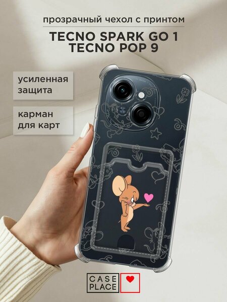 Чехол на Tecno Spark Go 1/Pop 9 (Текно Спарк Go 1/Поп 9) с картой и принтом "Джерри и сердце 1"