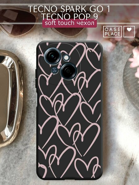 Чехол на Tecno Spark Go 1/Tecno POP 9 / Техно Спарк Го 1/Техно ПОП 9 с принтом "Hearts doodle pink 1"