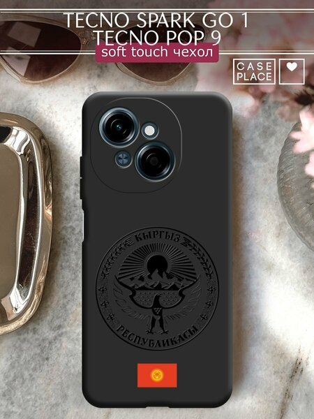 Чехол на Tecno Spark Go 1/Tecno POP 9 / Техно Спарк Го 1/Техно ПОП 9 с принтом "Герб и флаг Кыргызстана"