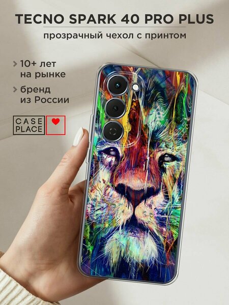 Силиконовый чехол из приятного на ощупь материала с сочным УФ-принтом – порадует и оставит яркие впечатления. Чехол помогает защитить Tecno Spark 40 Pro Plus от царапин, загрязнений и при падениях с небольшой высоты. Чехол защищает от любых повреждений. Накладка не скользит. Она тонкая и легкая – девайс в ней не становится больше, поэтому им так удобно пользоваться. Для надежной защиты модуля камер от повреждений есть бортик: если смартфон упадет на заднюю крышку, этот бортик не даст видеоблоку удариться о поверхность, приняв удар. Специальные точки внутри чехла не дают ему прилипать к корпусу устройства. Технологические вырезы выполнены с высокой точностью, поэтому все порты и кнопки Текно Спарк 40 Про Плюс остаются доступными. Мы наносим изображения на собственном японском оборудовании гибкими чернилами, поэтому принт "Лев арт 6" не царапается монетами, ключами и песчинками, не затирается и не трескается при повседневных деформациях. Пигмент застывает под действием УФ-излучения, образуя защитную пленку. Положение принта подобрано таким образом, чтобы гармонично смотреться относительно блока камер. Формат рисунка – 2D: боковые стороны остаются прозрачными.