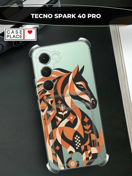 Чехол на Tecno Spark 40 Pro (Текно Спарк 40 Про) с картой и принтом Нарисованный конь