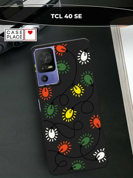 Черный матовый чехол на TCL 40 SE / ТСЛ 40 SE с принтом "Гирлянда"