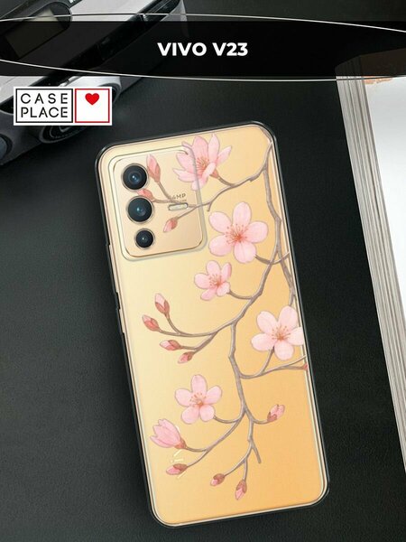 Чехол на Vivo V23 / Виво V23 с принтом "Веточка распускающейся сакуры 2"