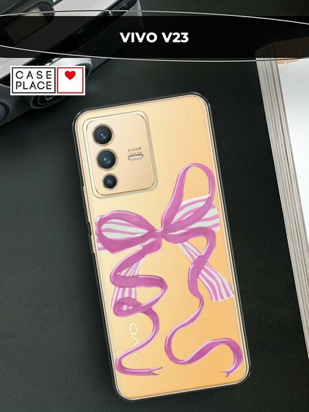 Чехол на Vivo V23 / Виво V23 с принтом "Полосатый розовый бант 2"