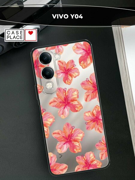 Силиконовый чехол на Vivo Y04 / Виво Y04 с принтом "Pink flowers"