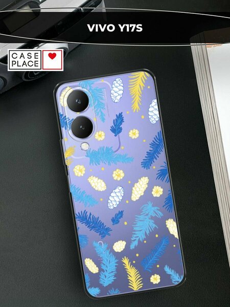 Чехол на Vivo Y17s / Виво Y17s с принтом "Елки и шишки", прозрачный