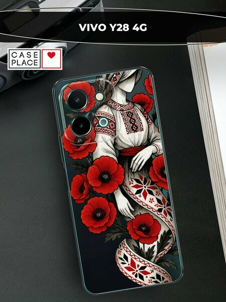Чехол на Vivo Y28 4G / Виво Y28 4G с принтом Маки и девушка, прозрачный