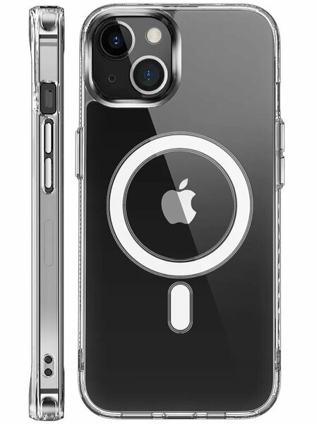 Чехол на айфон 14, с MagSafe, силикон, поликарбонат, прозрачный