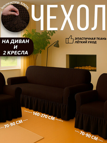 Чехол универсальный на диван, для дивана, для 2 кресел, полиэстер