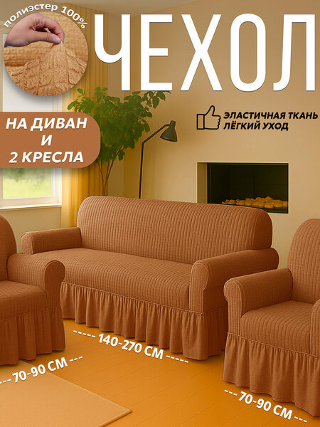 Чехол универсальный на диван, для дивана, для 2 кресел, полиэстер