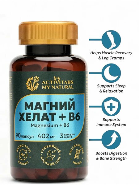 Минеральная добавка магния Хелатный магний 402 мг, поддерживает здоровье костей и иммунитета, ежедневная добавка Chelated Magnesium 402mg, Supports Bone and Immune Health, Daily Supplement Укрепите свой иммунитет с помощью хелатного магния; Эта добавка поддерживает устойчивый сердечный ритм и поддерживает уже нормальный кровоток. Каждая доза содержит 402 мг этого важнейшего минерала, который способствует здоровью костей и функции мышц, а также помогает расслабить мышцы. Принимайте 1капсулу в день три раза во время еды для здоровья и хорошего самочувствия. Стабилизирует и улучшает работу сердца, мозга, нервной системы, повышает настроение и качество сна магний в хелатной форме комфортно переносится и не имеет побочных эффектов со стороны ЖКТ. Он расслабляет мускулатуру коронарных сосудов, чем избавляет от приступов и улучшает питание миокарда, помогает избежать инфаркта; Рекомендован хелатный магний и при вегетососудистой дистонии. Он помогает повысить стрессоустойчивость и снизить риск проявления симптомов болезни. Для сна и памяти, который оказывает положительное влияние на эмоциональное состояние, снижает стресс, утомляемость и нервное напряжение, устраняет чувство тревоги, оказывает успокоительное действие, повышает работоспособность. Недостаток магния приводит к ишемической болезни сердца, сердечной недостаточности, атеросклерозу и артериальной гипертензии. Магний в хелатной форме усваивается лучше, чем магний цитрат 400, малат. Магний повышает уровень энергии и бодрости. Улучшает работу мозга и нервной системы. Отличная профилактика осенне-зимней хандры, депрессии, тревожности, нарушений сна. Витамин необходим для женщин и мужчин, а также для беременных и кормящих. Структура БАДа идеальна для девушек и взрослых женщин, которые следят за собой. Рекомендован при интенсивных умственных и физических нагрузках для поддержания функциональной активности мышц нижних конечностей. Способствует снижению риска развития мышечных спазмов и судорог. Витаминный комплекс, который способствует снижению тревожности и улучшает настроение и сон. Уменьшает мышечные судороги и нормализует обмен веществ, уменьшает мигрени, восстанавливает энергию, улучшает память. Если вы зачастую рассеяны, раздражительны и не высыпаетесь - возможно у Вас имеется недостаток магния. Свойства магния усиливаются в сочетании с витамином b. Vitamin B6 (витамин группы В, Б, B) участвует в регуляции метаболизма нервной системы, улучшает всасывание магния и его проникновение в клетки. Он способствует усвоению кальция из пищи, что является необходимым для поддержания здоровья костей и зубов. Магний отвечает за синтез энергии в организме, нормализует высокое давление, положительно влияет на эластичность сосудов, укрепляет сосудистые стенки, улучшает работу сердца, нормализует состояние нервной системы, улучшает функции внутренних органов, способствует растворению атеросклеротических бляшек, способствует сжиганию и преобразованию в энергию жиров, улучшается выведение токсинов и шлаков.