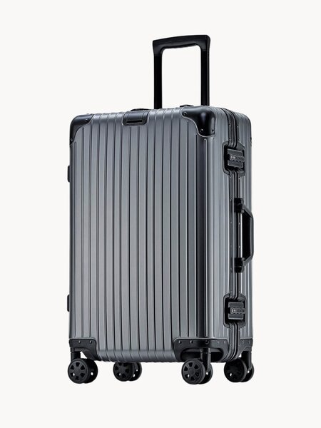 Корпус изготовлен из металлического алюминиевого сплава, который легок по весу и ударопрочен. Размер чемодана составляет 66 х 46 х 27 см, вес чемодана небольшой для такого размера - 5,6 кг. Внутреннее пространство очень вместительное, есть дополнительно 4 сетчатых кармана для мелких предметов. Чемодан имеет ребристую поверхность, что добавляет ему эстетичности. Металлический чемодан является аналогом известной модели чемоданов Rimowa, также изготовлен из алюминиевого сплава и имеет идентичный дизайн как снаружи, так и внутри. В данной модели чемоданов на колесах сделана очень удобная и плавная эргономичная выдвижная ручка, также есть ручки для переноски сверху и сбоку. Бесшумное резиновое поворотное на 360° колесо имеет улучшенную амортизацию, благодаря этому снижается шум при движении. Алюминиевый чемодан оснащен кодовым замком TSA, предназначенным для предотвращения повреждения чемодана при досмотре на таможне (к чемодану НЕ прилагается ключ для данного замка, поскольку эти замки изготовлены специально для досмотра в авиакомпаниях). Внутри чемодана вы найдете инструкцию по смене кода. Для вашего удобства мы приводим ее здесь на русском языке: 1. Нажмите на боковую кнопку на замке, удерживая ее, установите те цифры, которые вам нужны. 2. Отпустите боковую кнопку. 3. Ваш новый код установлен. Данную процедуру необходимо выполнить с каждым замком, если вы хотите везде установить личные коды. Обращаем ваше внимание, что в нашем магазине также представлены чемоданы для ручной клади из данной коллекции в серебристом, черном и антрацитовом цвете. Приятных покупок!