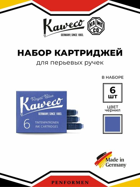 Чернила синие Kaweco для перьевой ручки, набор картриджей 6 шт (Royal Blue)