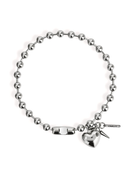 Акцентный аксессуар из крупной шариковой цепочки с подвеской: сердцем и шипом. Крепится на застёжку-коннектор. Комбинируется с другими украшениями бренда в сеты-обвесы на шею. Можно носить как браслет на запястье в два ряда или как обвес на сумку.PHEW — припанкованная коллекция OMUT JEWELRY. Знаковые шипы, раздутые сердца, балансирующие сферы и массивная база создают дерзкий, выразительный образ. Амулеты для тех, кто успел уколоться и больше не боится любовных царапин или просто ценит брутализм, силу форм и контрасты в стилистических решениях.