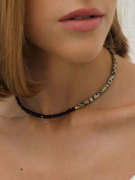 Трендовое ассиметричный чокер на шею из натуральных камней, либо перламутра, либо агата и далматиновой яшмы - украшение, которое обратит на себя внимание окружающих и сделает любой образ стильным и неповторимым, прекрасный вечерний вариант, и универсальное повседневное украшение. Яшма далматиновая также обладает прекрасными общеукрепляющими свойствами, очень благоприятно влияет на сердечно-сосудистую систему. Длина 38 см+ 5 см. Вы можете собрать прекрасный стильный комплект украшений, подобрав подобный браслет, артикул 107370026, 118010649 и т. д. Модная женская бижутерия- это отличный подарок себе, подруге, сестре, маме, коллеге на день рождения, Новый год, 8 Марта! Каждое ювелирное изделие индивидуально и сделано с любовью. Хороший вариант подарка для себя или близких (подруге, коллеге, сестре, маме или любимой девушке, дочке) на новый год, день рождения, юбилей, годовщину, свадьбу, 8 марта, выпускной, день матери и учителя и просто так подарки женщинам. К украшениям прилагается стильный бархатный мешочек для хранения. Мы имеем широкий спектр бижутерии женской на шею ручной работы, например, колье и чокер из натуральных камней, бисера, страз, жемчуга, бусин разных цветов, украшения для девушек, девочек, подростков, аксессуары для подарков девушкам, женщинам, подругам, любимым, женская бижутерия на шею. Наш бренд стремится стать лучше, мы будем очень благодарны Вам за честный отзыв о нашей продукции. Будем рады видеть Вас в числе наших постоянных клиентов. Добавляйте наш бренд в избранное, чтобы быть в курсе всех новинок, акций и выгодных предложений. С любовью, Браслет Bar!