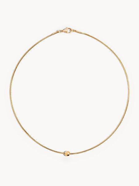 Базовый, минималистичный чокер из тонкой цепи-snake теплого золотого оттенка и акцентной деталью в виде небольшой стальной сферы. Простой и лаконичный дизайн делает украшение универсальным в носке и неотъемлемой частью любого образа - как повседневного, так и делового. Материал: сталь Длина изделия: 36 см Диаметр сферы: 8 мм Тип замка: карабин В целях сохранности украшения - протирать сухой салфеткой после использования. Избегайте попадания бытовой химии на изделия. Украшение поставляется в фирменной упаковке из плотного картона с атласным мешком-пыльником, в котором можно хранить изделие на протяжении всего срока эксплуатации.