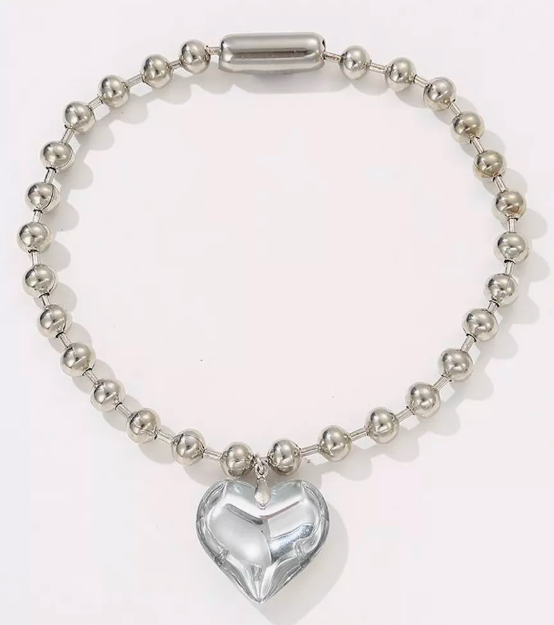 Популярное украшение из серебристой цепи с массивным сердцем — это трендовый аксессуар в стиле Balenciaga, который стал настоящим хитом 2025 года. Чокер длиной 42 см отличается выразительным дизайном с крупными звеньями цепи и объёмным металлическим сердцем, создавая смелый и эффектный образ. Такой аксессуар сочетает в себе брутальность и элегантность, что делает его универсальным для создания как повседневных, так и вечерних луков. В 2025 году подобные украшения с крупными цепями и объёмными кулонами в форме сердца активно поддерживают модные инфлюенсеры и дизайнеры, подчеркивая тенденцию на массивные и заметные аксессуары. Серебристый оттенок придаёт изделию современный и стильный вид, а длина 42 см обеспечивает удобную посадку на шее. Этот чокер можно сочетать с минималистичной одеждой для создания акцента или использовать в многослойных комплектах с другими украшениями для более сложного образа. Чокер черный / модный